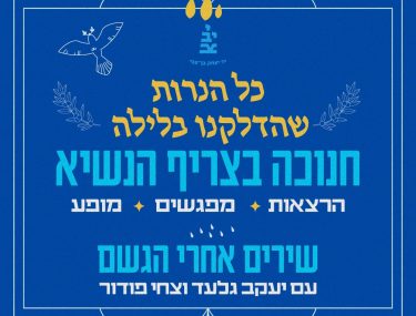 בחנוכה, בימים א-ד' מוזמנים עם כל המשפחה לסיורים ופעילויות בצריף הנשיא: תיאטרון צלליות באנימציית Stopmotion, סיפורים, שירים ומשחקים שילדים וילדות אוהבים. מחיר: 20 ש"ח.